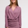 Bluza o nieco innym obliczu elegancka, o kroju kopertowym z drapowaniem i kapturem, a do tego wąskie rękawy z wycięciem na kciuk w mankietach.