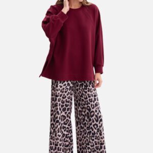 Bluza damska oversize wykonana z wysokiej jakości, gładkiej dzianiny dresowej o gramaturze 280 g ze spodem w pętelkę, która zapewnia komfort, miękkość i trwałość. Model wkładany przez głowę, bez kieszeni i podszewki, utrzymany w minimalistycznym stylu. Klasyczny okrągły dekolt pod szyję oraz długie raglanowe rękawy zakończone mankietami nadają bluzie sportowo-casualowy charakter. Rozcięcia po bokach u dołu dodają lekkości, zapewniając swobodę ruchów i ciekawy detal stylistyczny. Fason luźny, oversize, o prostym i swobodnym kroju, który świetnie maskuje drobne niedoskonałości i daje wiele możliwości stylizacji. Długość do bioder sprawia, że bluza pasuje zarówno do jeansów, jak i legginsów, gwarantując wygodę na co dzień. Zaprojektowana i uszyta w Polsce z dzianiny wyprodukowanej w Łodzi to połączenie jakości, funkcjonalności i ponadczasowego designu.
