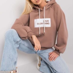 Bluza damska z długim rękawem oraz kapturem. Na przodzie ozdobny napis.