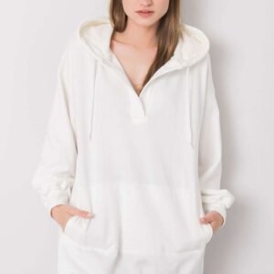 Bluza damska o przedłużanym kroju z kapturem. Na przodzie kieszonka typu kangurek. Idealna propozycja na co dzień i nie tylko.
