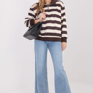 Damska bluza w paski to wygodna i stylowa propozycja w casualowym wydaniu, idealna na co dzień. Wykonana z miękkiego i przyjemnego w dotyku materiału będącego połączeniem wiskozy z elastanem, zapewnia komfort noszenia oraz swobodę ruchów przez cały dzień. Klasyczny wzór w paski nadaje bluzie ponadczasowego charakteru i sprawia, że łatwo dopasować ją do wielu stylizacji. Model o standardowej długości z długimi rękawami doskonale sprawdzi się w chłodniejsze dni. Kołnierzyk z krótkim zamkiem stanowi praktyczny i stylowy detal, pozwalający regulować dekolt według własnych preferencji. Bluza nie posiada dodatkowego zapięcia, dzięki czemu jest wygodna i łatwa do założenia. To uniwersalny element garderoby, który świetnie komponuje się z jeansami, spodniami materiałowymi czy legginsami, tworząc komfortowe i modne zestawy na co dzień.