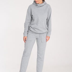 Bawełniana bluza z długim rękawem, luźną stójką oraz kapturem. Dół bluzy oraz rękawy zakończone ściągaczami.