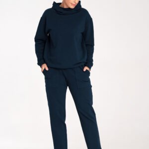 Bawełniana bluza z katurem i luźną stójką. Bluza z długim rękawem, dół i ekawy ze ściągaczem.