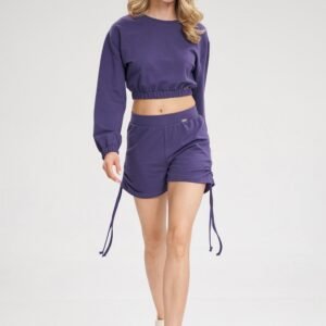 Bluza typu crop z długim rękawem. Rękawy i dół bluzy wykończone szeroką gumą. Półokrągły dekolt.