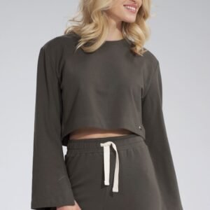 Krótka bawełniana bluza z szerokim rozciętym rękawem. Półokrągły dekolt.