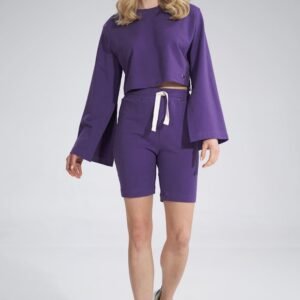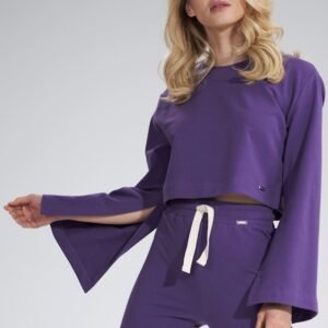 Krótka bawełniana bluza z szerokim rozciętym rękawem. Półokrągły dekolt.