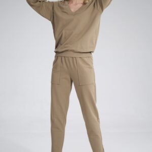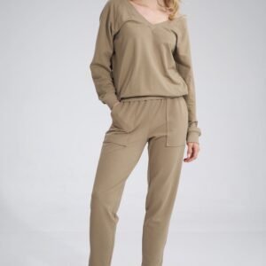 Bawełniana bluza z dekoltem w serek, z długim rękawem wykończonym ściągaczem. Tył ściągany ozdobną taśmą.