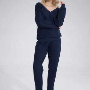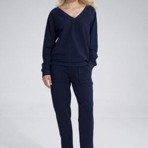 Bawełniana bluza z dekoltem w serek, z długim rękawem wykończonym ściągaczem. Tył ściągany ozdobną taśmą.