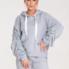 Bawełniany bluza bezrękawnik z kapturem, z przodu naszyta duża kieszeń. Bluza o luźnym kroju.
