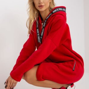 Bluza damska o przedłużonym kroju, z długim rękawem oraz kapturem. Bluza zapinana na zamek, po bokach kieszenie wsuwane również zapinane na zamki.