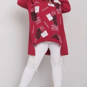 Bordowa bluza z nadrukiem i aplikacją. Bluza posiada kaptur oraz długi rękaw.