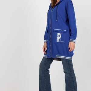 Bluza damska o przedłużonym kroju z długim rękawem oraz kapturem. Bluza zapinana na zamek, na przodzie duże kieszenie wsuwane.