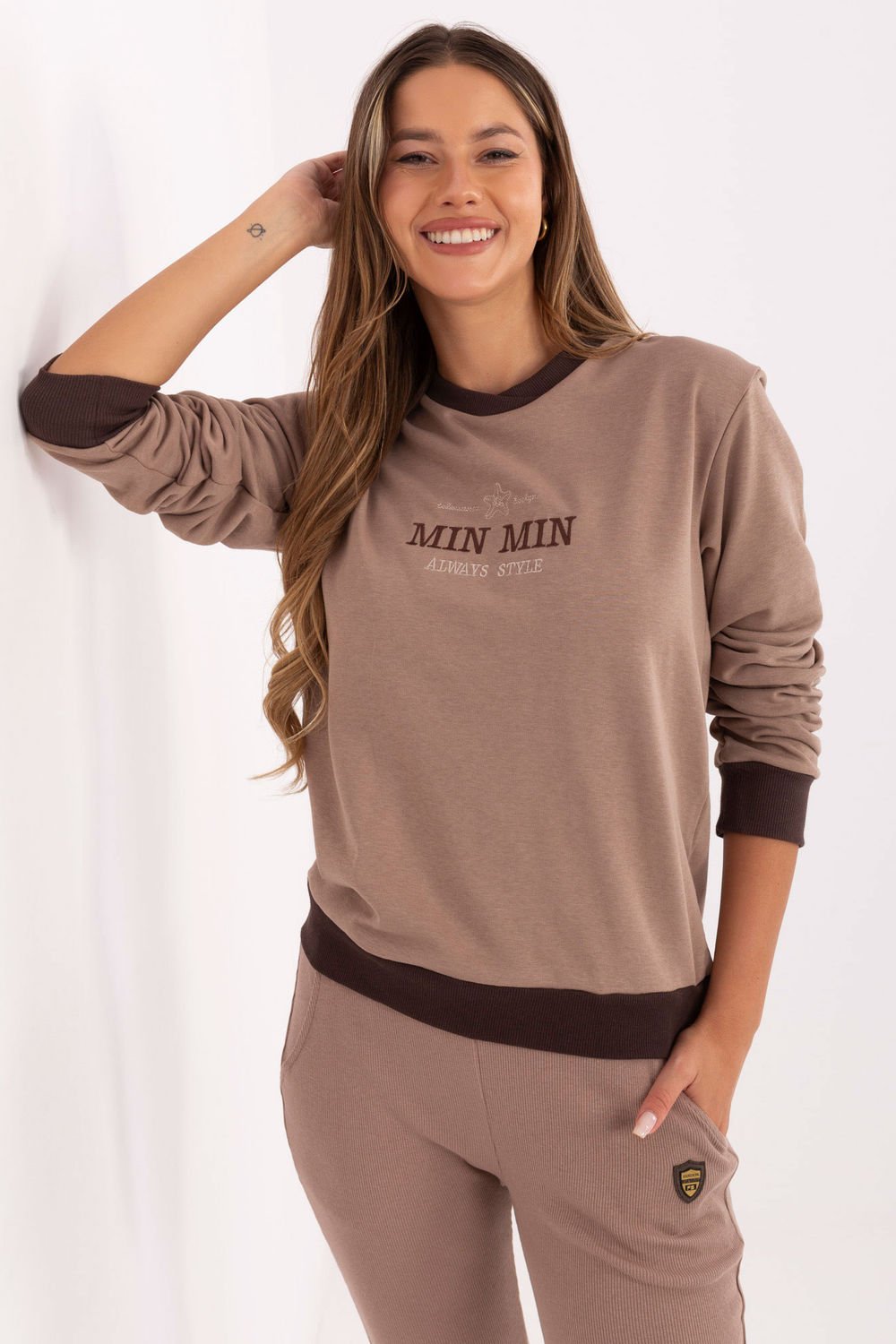 Casualowa bluza damska wykonana z miękkiej mieszanki bawełny i poliestru, łącząca komfort noszenia z modnym designem. Klasyczny okrągły dekolt i długie rękawy zapewniają wygodę, a standardowa długość sprawia, że bluza doskonale pasuje do codziennych stylizacji. Przód zdobi subtelny haft, który nadaje całości eleganckiego charakteru, a kontrastowe wykończenia dodają nowoczesnego, wyrazistego akcentu. Model bez zapięcia, idealny do casualowych zestawów na co dzień.