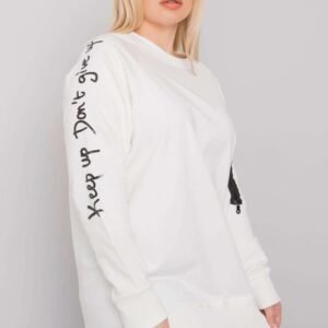 Bluza damska plus size w kolorze ecru z długim rękawem. Na rękawie ozdobny zamek.