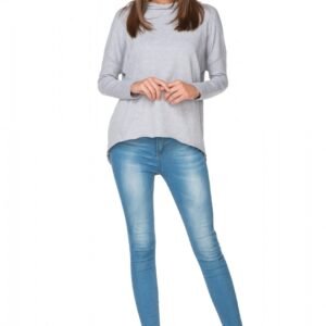 Sportowa bluza typu kimono z kapturem wykonana z dzianiny dresowej. Rękaw długi. Tył delikatnie przedłużany. Rękaw oraz dół bluzy pozostawiony w stanie surowym