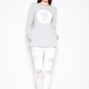 Asymetryczna, taliowana bluza z oryginalnym nadrukiem. Po bokach modelu znajdują się rozcięcia. Świetna do codziennych stylizacji.