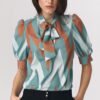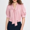 Lekka i kobieca bluzka o regularnym kroju, wykonana z przyjemnego w dotyku materiału wiskozowego, który zapewnia komfort noszenia i naturalną przewiewność. Model bez rękawów, z dekoltem w kształcie litery V, który subtelnie podkreśla szyję i linię obojczyków. Dekolt oraz ramiona wykończone są delikatną plisą, dodającą całości eleganckiego wyrazu. Bluzka wkładana przez głowę, bez zbędnych zapięć idealna do stylizacji zarówno casualowych, jak i bardziej formalnych. Świetnie komponuje się z marynarką, spodniami czy spódnicą.