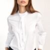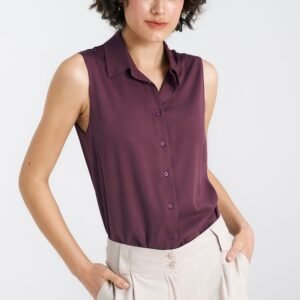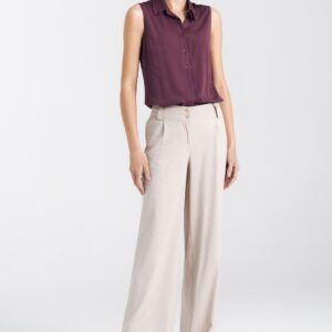 Klasyczna koszula damska o regularnym kroju zachwyca swoją prostotą i elegancją, będąc niezastąpionym elementem w kobiecej garderobie. Wykonana z delikatnego materiału wiskozy, zapewniającego uczucie miękkości i komfortu noszenia przez cały dzień. Jej klasyczny kołnierzyk dodaje całości wyrafinowanego charakteru, podkreślając elegancję i ponadczasowy styl. Bezrękawnik nadaje koszuli lekkości i świeżości, idealnie sprawdzając się w ciepłe dni czy podczas letnich spotkań. Praktyczne zapięcie na guziki umieszczone z przodu ułatwia zakładanie i zapewnia wygodę użytkowania. Koszula ta doskonale sprawdzi się jako uniwersalny element garderoby, nadając szyku i klasy każdej stylizacji, zarówno tej casualowej, jak i bardziej formalnej.