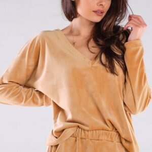 Luźny i prosty krój bluzy pasuje do miejskich stylizacji i dobrze leży na każdej sylwetce. Długie, proste rękawy oraz dół modelu zakończone ściągaczami, dodatkowo niezwykle kobiecy dekolt w serek. Produkt zaprojektowany i wyprodukowany w Polsce.