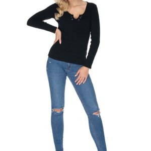 Dopasowana bluzka z długim rękawem. Przy dekolcie napy. Wysokiej jakości bawełna prążkowana.