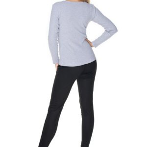 Dopasowana bluzka z długim rękawem. Przy dekolcie napy. Wysokiej jakości bawełna prążkowana.