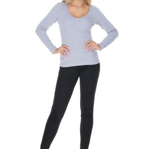 Dopasowana bluzka z długim rękawem. Bluzka z dekoltem w serek. Wysokiej jakości bawełna prążkowana.