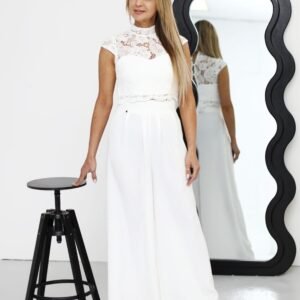 Wyjątkowa i kobieca, ta bluzka to esencja elegancji w nowoczesnym wydaniu. Wykonana z finezyjnej gipiury, zachwyca dopasowanym krojem, który subtelnie podkreśla sylwetkę. Model zapinany jest na guziki i wykończony klasyczną stójką, co nadaje całości szyku i wyrafinowania. Wnętrze bluzki zostało podszyte delikatnym mini gorsetem, który zapewnia dodatkowe wsparcie i pięknie modeluje górną partię ciała. Całość dopełnia misterny wzór gipiury, który dodaje lekkości i romantycznego charakteru. To idealna propozycja na wyjątkowe okazje, kiedy chcesz wyglądać elegancko, ale z nutą nowoczesności.