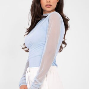 Elegancka, dopasowana bluzka damska to wyjątkowa propozycja dla kobiet ceniących styl i wszechstronność. Doskonale sprawdzi się na okazje wizytowe, do pracy, na imprezę, jak i w codziennych, bardziej eleganckich stylizacjach. Gładki wzór podkreśla jej ponadczasowy charakter i pozwala na łatwe łączenie z innymi elementami garderoby. Bluzka została wykonana z wysokiej jakości poliestru z dodatkiem elastanu, co zapewnia elastyczność, komfort noszenia oraz dobre dopasowanie do sylwetki. Krótka długość subtelnie podkreśla proporcje, a lejący, okrągły dekolt dodaje całości delikatności i kobiecej elegancji. Model posiada długie rękawy z siateczki bez podszewki, które nadają lekkości i efektownego wyglądu. W centralnej części bluzka wyposażona jest w podszewkę, zapewniając komfort i odpowiednie krycie. Dodatkowym atutem jest drapowanie, które pięknie modeluje sylwetkę i podkreśla elegancki charakter bluzki. Brak zapięcia sprawia, że model jest wygodny i łatwy w zakładaniu. To stylowa i kobieca bluzka, idealna do spodni z wysokim stanem, spódnic oraz eleganckich marynarek.