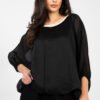 Elegancka, dopasowana bluzka damska to wyjątkowa propozycja dla kobiet ceniących styl i wszechstronność. Doskonale sprawdzi się na okazje wizytowe, do pracy, na imprezę, jak i w codziennych, bardziej eleganckich stylizacjach. Gładki wzór podkreśla jej ponadczasowy charakter i pozwala na łatwe łączenie z innymi elementami garderoby. Bluzka została wykonana z wysokiej jakości poliestru z dodatkiem elastanu, co zapewnia elastyczność, komfort noszenia oraz dobre dopasowanie do sylwetki. Krótka długość subtelnie podkreśla proporcje, a lejący, okrągły dekolt dodaje całości delikatności i kobiecej elegancji. Model posiada długie rękawy z siateczki bez podszewki, które nadają lekkości i efektownego wyglądu. W centralnej części bluzka wyposażona jest w podszewkę, zapewniając komfort i odpowiednie krycie. Dodatkowym atutem jest drapowanie, które pięknie modeluje sylwetkę i podkreśla elegancki charakter bluzki. Brak zapięcia sprawia, że model jest wygodny i łatwy w zakładaniu. To stylowa i kobieca bluzka, idealna do spodni z wysokim stanem, spódnic oraz eleganckich marynarek.