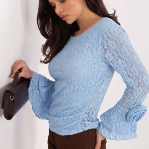 Elegancka bluzka koronkowa to stylowa propozycja, która doskonale sprawdzi się zarówno na wyjątkowe okazje, jak i w codziennych stylizacjach. Wykonana z wysokiej jakości materiału będącego połączeniem poliestru z elastanem, zapewnia komfort noszenia oraz dobre dopasowanie do sylwetki. Urozmaicona faktura materiału nadaje bluzce wyjątkowego charakteru i subtelnej elegancji. Model o krótkiej długości z okrągłym dekoltem i bez zapięcia prezentuje się lekko i nowocześnie. Długie rękawy typu dzwon zostały wykończone efektownymi falbankami oraz ozdobnym materiałowym kwiatkiem, które przyciągają uwagę i dodają całości romantycznego akcentu. Przód bluzki posiada podszewkę, natomiast rękawy oraz tył pozostają delikatnie transparentne, podkreślając koronkowy charakter modelu. Dodatkowe marszczenia po bokach bluzki subtelnie modelują sylwetkę. Bluzka idealnie sprawdzi się jako element stylizacji wizytowych, na imprezę, do pracy, jak i na co dzień, w połączeniu ze spodniami z wysokim stanem, spódnicą lub eleganckimi jeansami.