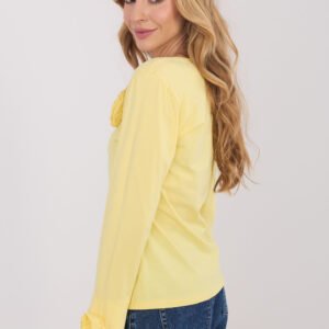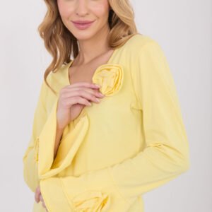 Elegancka bluzka typu longsleeve o dopasowanym kroju, która efektownie podkreśla sylwetkę i łączy klasykę z ozdobnymi detalami. Wykonana z wysokiej jakości bawełny, zapewnia komfort noszenia i przyjemne dopasowanie przez cały dzień. Model o gładkim wzorze posiada dekolt w serek, który subtelnie eksponuje szyję i dodaje kobiecego charakteru. Długie rękawy typu dzwon nadają całości lekkości i elegancji, a ozdobne, materiałowe kwiaty umieszczone na rękawach oraz przy dekolcie stanowią wyjątkowy akcent dekoracyjny. Standardowa długość sprawia, że bluzka doskonale sprawdzi się zarówno w codziennych stylizacjach, do pracy, na spotkania wizytowe, jak i na eleganckie wyjścia czy imprezy.