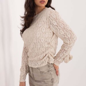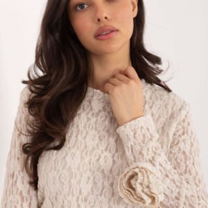 Elegancka, dopasowana bluzka koronkowa to wyjątkowy model, który łączy kobiecość, subtelny szyk i wyraziste detale. Wykonana z wysokiej jakości wiskozy z dodatkiem elastanu, zachwyca komfortem, miękkością oraz piękną, urozmaiconą fakturą koronki. Model posiada okrągły dekolt oraz długie rękawy bez podszewki, dzięki czemu delikatny wzór koronki jest na nich w pełni widoczny. Rękawy zdobią efektowne róże wykonane z tej samej koronki, tworząc elegancki i bardzo kobiecy akcent. Korpus bluzki został wyposażony w podszewkę, co zapewnia wygodę, estetyczne układanie i pełną swobodę noszenia. Dodatkowe marszczenia po bokach subtelnie modelują sylwetkę, podkreślając talię i nadając bluzce wyrafinowanego charakteru. Model nie posiada zapięcia, jest wygodnie wkładany przez głowę. Ta bluzka to idealna propozycja na wizytowe wyjścia, imprezy, do pracy oraz wszędzie tam, gdzie chcesz połączyć elegancję z wyjątkowym, dopracowanym detalem.
