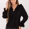 Elegancka, dopasowana bluzka koronkowa to wyjątkowy model, który łączy kobiecość, subtelny szyk i wyraziste detale. Wykonana z wysokiej jakości wiskozy z dodatkiem elastanu, zachwyca komfortem, miękkością oraz piękną, urozmaiconą fakturą koronki. Model posiada okrągły dekolt oraz długie rękawy bez podszewki, dzięki czemu delikatny wzór koronki jest na nich w pełni widoczny. Rękawy zdobią efektowne róże wykonane z tej samej koronki, tworząc elegancki i bardzo kobiecy akcent. Korpus bluzki został wyposażony w podszewkę, co zapewnia wygodę, estetyczne układanie i pełną swobodę noszenia. Dodatkowe marszczenia po bokach subtelnie modelują sylwetkę, podkreślając talię i nadając bluzce wyrafinowanego charakteru. Model nie posiada zapięcia, jest wygodnie wkładany przez głowę. Ta bluzka to idealna propozycja na wizytowe wyjścia, imprezy, do pracy oraz wszędzie tam, gdzie chcesz połączyć elegancję z wyjątkowym, dopracowanym detalem.
