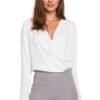 Stylowa bluzka o uniwersalnym, kopertowym fasonie, wykonana z pięknej, lekkiej tkaniny. Sprawdzi się jako dodatek do wielu stylizacji, zarówno tych eleganckich jak i na co dzień.