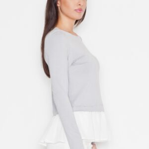 Prosta bluzka z długim rękawem z doszytą ozdobną falbanką u dołu.