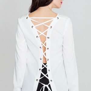 Bluzka damska z długim wiązanym rękawem, dekolt w serek, na plecach efektowne wiązanie.