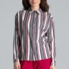 Fioletowa klasyczna prosta koszula z dekoltem w serek, na całej długości falbanka. Długi rękaw z marszczonym mankietem. Zapinana z przodu na guziki.