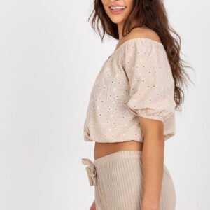 Codzienna bluzka w stylu boho, idealna na letnie dni i swobodne, kobiece stylizacje. Wykonana z przewiewnej, naturalnej bawełny, zapewniającej komfort noszenia przez cały dzień. Model o krótkiej długości i zmysłowym dekolcie typu hiszpanka, który pięknie eksponuje ramiona i dodaje lekkości całej sylwetce. Bluzka posiada krótki rękaw i zachwyca dominującym, ażurowym haftem, podkreślającym boho charakter projektu. Dodatkową ozdobą są dekoracyjne guziki z przodu, które nadają całości subtelny i stylowy akcent. Idealna propozycja na codzienne wyjścia, spacery czy letnie spotkania.