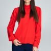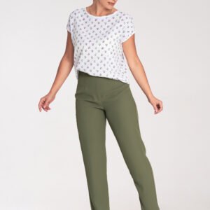 Bluzka o prostym kroju z krótkim rękawem. Bluzka posiada okrągły dekolt, na plecach zapięcie na napę.