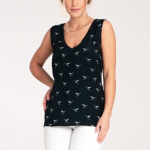 Bluzka na grubych ramiączkach. Zaokrąglony dekolt w serek. Bluzka idealna do wielu stylizacji.