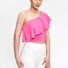 Bluzka z rękawem 3/4, z wycięciami na ramionach oraz ozdobnym przewiązaniem pod szyją.