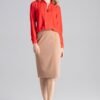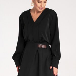 Bluzka z długim rękawem z wysokiej jakości satyny. Dekolt w kształcie litery V z eleganckimi przeszyciami. Mankiety zapinane na guziki.