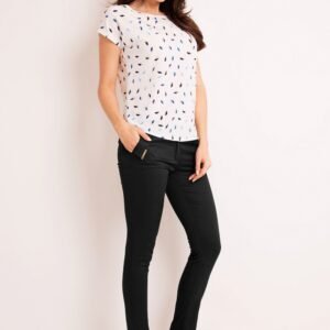 Prosta bluzka w kolorze białym z krótkim rękawkiem. Bluzka z materiału w niebieskie parasolki.