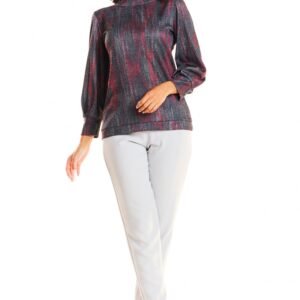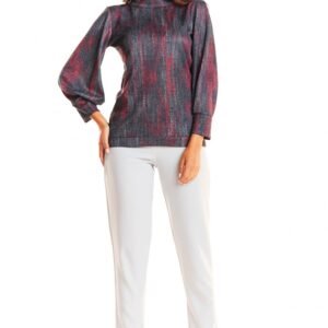 Wizytowa bluzka z okrągłym dekoltem oraz rękawem 3/4. Bluzka wykonana z połyskującego materiału.