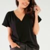 Luźna koszulka z głębokim dekoltem. Idealna do codziennej stylizacji. Dekolt w kształcie litery V, który można nosić zarówno z przodu, jak i z tyłu. W zależności od tego, czy chcemy podkreślić biust, czy plecy. Produkt wyprodukowany w Polsce.