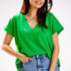 Rewelacyjna bluzka, wykonana z bawełny bardzo przyjemnej dla skóry. Dekolt w kształcie litery V podkreślający biust. Produkt wyprodukowany w Polsce.