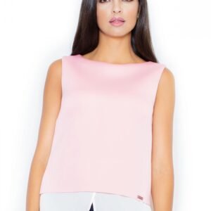 Piankowa bluzka bez rękawów z łączonych materiałów. Dół bluzki posiada delikatne rozcięcie. Idealna w zestawieniu z dopasowanymi spodniami.