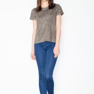Prosta bluzka z krótkimi rękawkami w kolorze oliwkowym. Idealna na co dzień.
