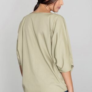 Bluzka wykonana z delikatnego materiału z charakterystycznym przeszyciem przez środek to doskonałe rozwiązanie dla kobiet ceniących nowe trendy.