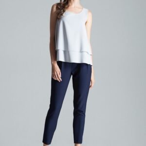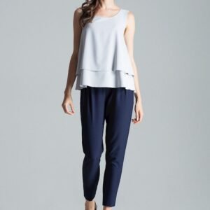 Szara urocza, dwuwarstwowa bluzka bez rękawów, z półokrągłym dekoltem, rozkloszowana do dołu.